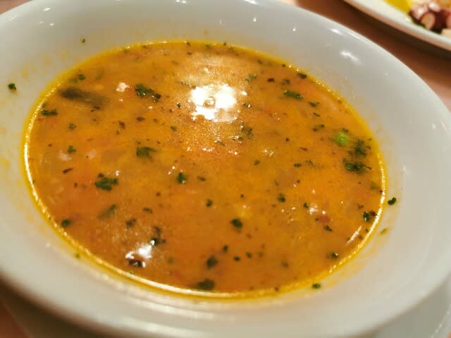 ミネストローネ。これに粉チーズ掛けて食べたのが美味しかった。各種野菜がてんこ盛り。