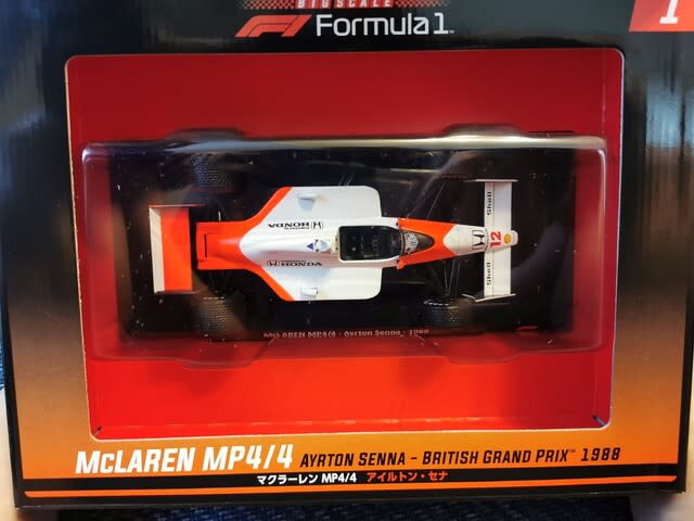 それはさておき、買いましたよ、DeAgostiniのF1シリーズの第一弾のAyrton Senna da Silvaの乗っていたMP4/4。