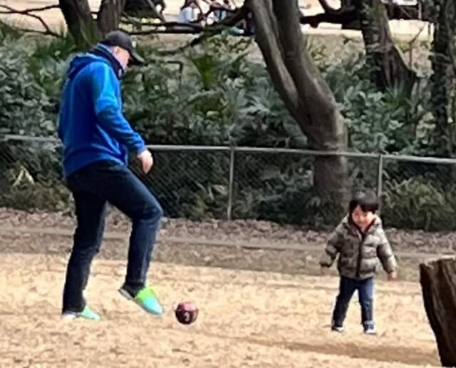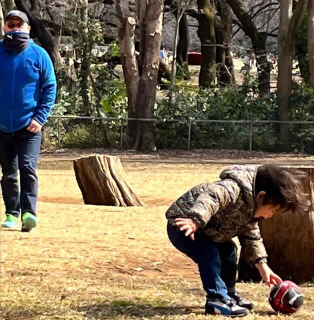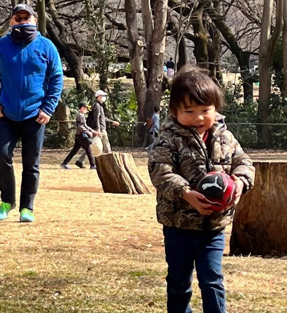 今日土曜日、2022年2月27日に初めて、そのボールを使って公園で息子とボール遊びをした。
