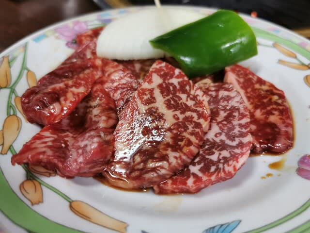 さて、初めて来たお店なので、量も分からず恐る恐る発注w。焼肉なのに、野菜だってさ。おいらは要らぬ。野菜、邪魔じゃ。。。