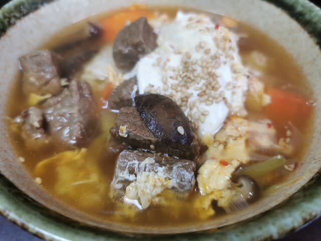 これだけ食べて、4人+みらんくんで、締めはカルビクッパ。