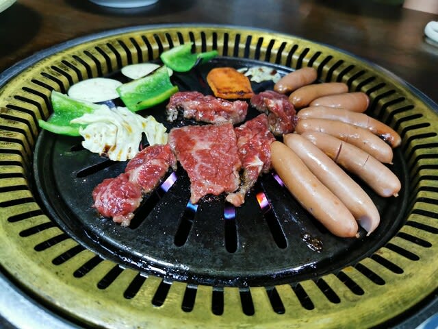 カルビから始まり、、これがまた変に脂っこくなくて絶品。ロースターの上にあるのがカルビ。