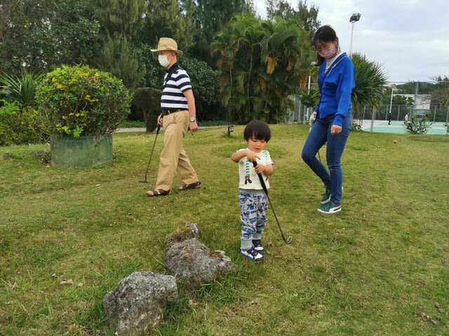 名護のThe Ritz-Carltonから戻り、Sheratonの中のパターゴルフ⛳を。