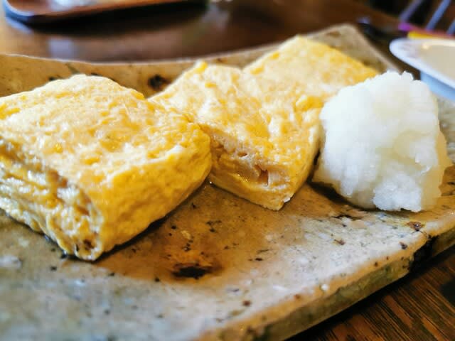 平日日中とはメニューが異なり、ランチセットがないので色々と頼む。まずはだし巻き玉子。美味しいよね。