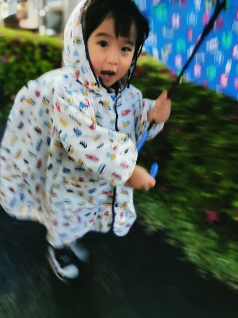 『保育園からの帰りレインコート着て傘差して···』