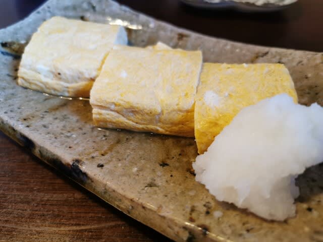 暫く待って中に。一度カウンターに座ったが空いたからとテーブル席へ変えてくれた。有り難し。おいらは冷たいお蕎麦。店主よりFacebookのコメントで温かい蕎麦のツユもと言われたのだが、この暑さ…。冷たい蕎麦が必須です。そしてサイドメニューとして卵焼き。ここはこう言った逸品が宜し。