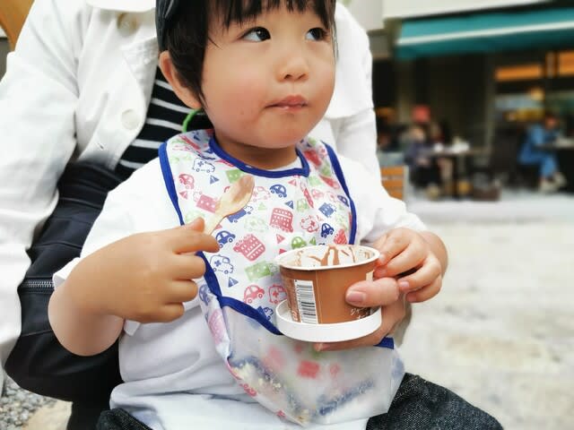 この下にあるスーパーなんてめっちゃお洒落。下北が大人の街になってました。まるで30年前、ウロウロとしていた我々が大人になるのを待っていたかの如く…。そこで買ったチョコレートアイスを頬張るみらんくん。