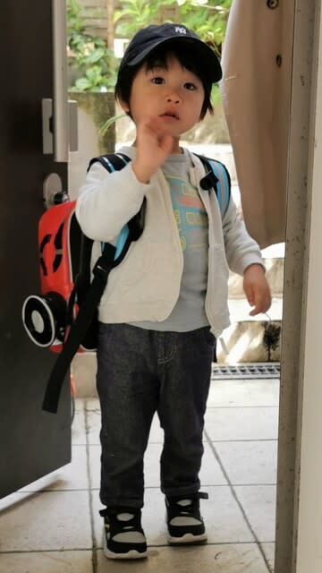 朝のルーティンで熱いお湯に入って肩周りを解そうと思っていたら、パパ、保育園一緒に行くよ、と言われ。