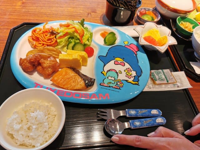 必然的に、ご飯の選択肢が狭くなるわけですね。故に、旅の楽しみと言えば食だと思うのに、それが叶わないと言うのがここ2年位の悲哀とでも言えましょうか、、、ところが、今回宿泊しているSheratonは、ホテル内に朝食会場が3箇所。クラブラウンジもきちんとあって、そこを入れると4箇所も朝ご飯を食べられるところがあると言うね。今朝食べたところはビュッフェではなく、和定食のレストランでした。子供用もちゃんとあって。