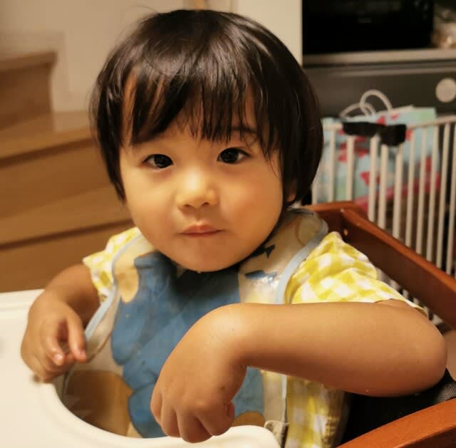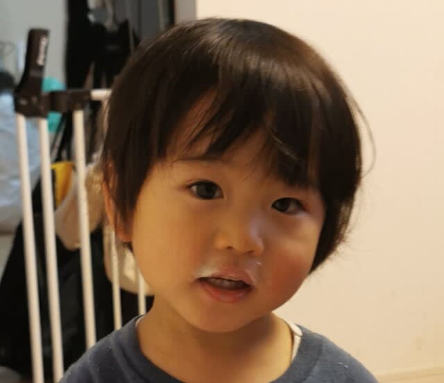 お出掛け前にバナナジュース🍌を作って飲んでいたみらんくん。