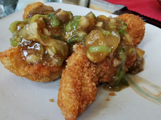 ネギたっぷり。しいたけも。片栗粉で固めてみた。美味し。