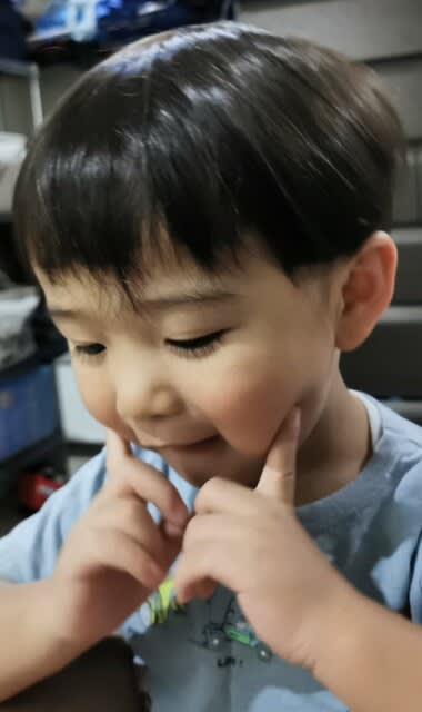 1歳の時のみらんくんのようなヘアスタイルに。赤ちゃん👶に戻ったみたいでちょっとパパ嬉しい♥。でも今はどんどん大きくなって、ちゃんと話せるから、2年前とかとは違って楽しさの質が変わったよねぇ。