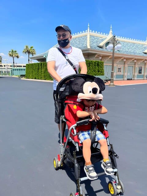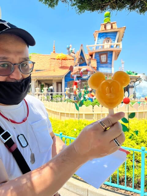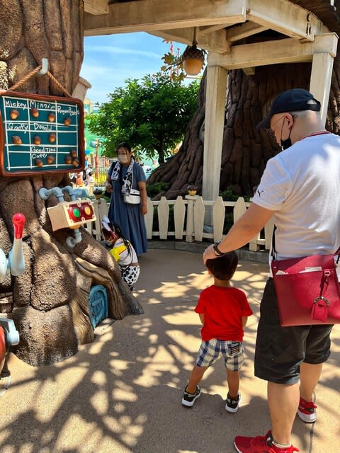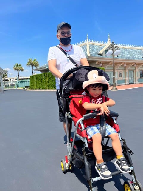 しかし、このミッキー帽、通気性ゼロで汗だくになってて。。。