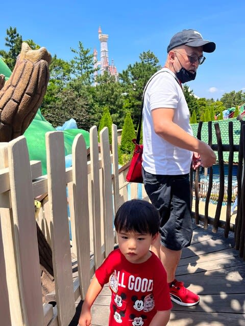 日陰があるところのみ歩いてもらったよ。そうしないと多分この年齢では暑くて倒れると思ったから。