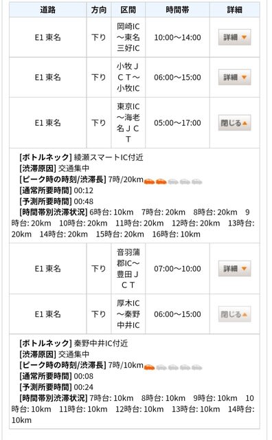 そして毎日眺めていたNEXCOの渋滞サイト。今見ても大渋滞予想のままだが、一度出した渋滞予想は変えないのかな?そんなプライドとか、要るかね(苦笑)?