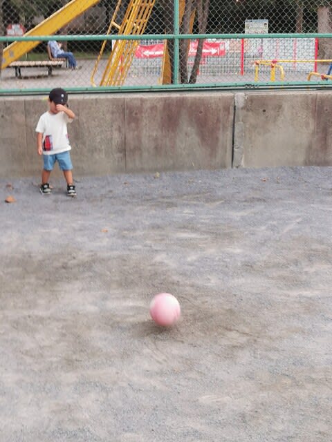 が、周りでバスケットボールしていたり、野球していたり、バレーボールしていたり、と全然集中できるような状況ではなかったね。ちょっとボールが飛んできたりして危ないって思うこともあったしね。でも楽しかったし、上手になったねぇ。何回かの中ではちゃんとトラップできたりね。ボール蹴るの好きになってくれて嬉しいなぁ。