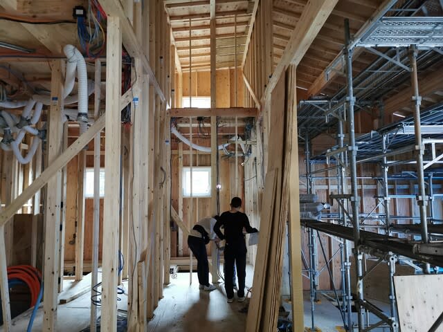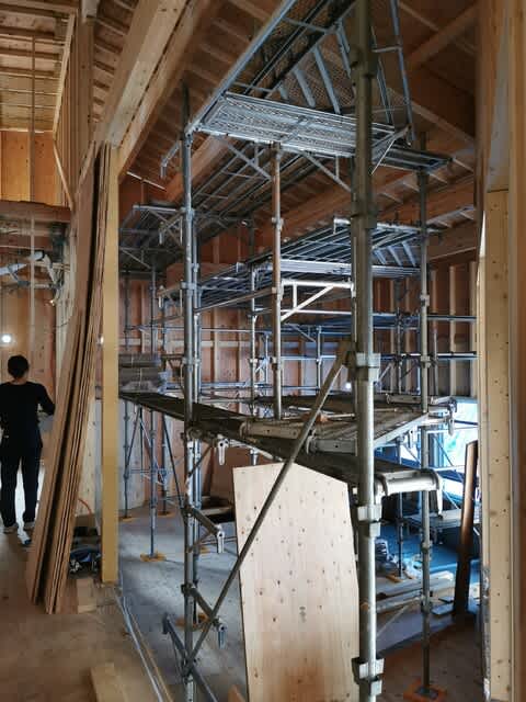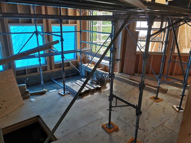 かなり出来上がってて、窓とかもう着いてました。ビックリする程天井高が高くてね。軽く4m以上あるんです。