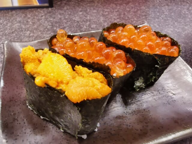 12貫で1,100円(税込)。で、ちょっと足りなかったので、うにといくらを足してみたけど。それでもそんなバカ高くない金額でお寿司食べられて幸せ♫。