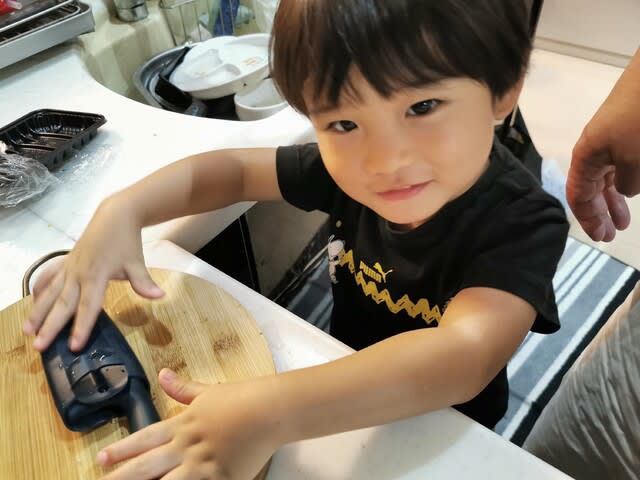 然し嬉しいのはこんなに笑顔になった、あれ切りたい、これ切りたいと言う笑顔だね。料理男子を突き詰めても良いね。色んなこと経験すると良いね。パパはMilanoで食べては、あ、これなら作れるって味を再現してお家で作ってましたよ。みらんくんの将来の奥さんはいっぱい作ってもらえるのかな?