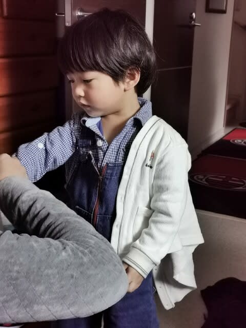 そこにファミちゃんの白いカーディガン。