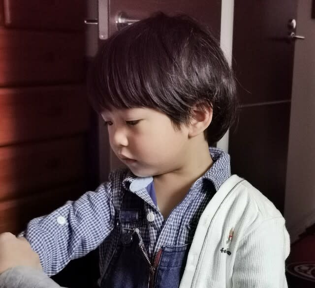 奥さんとみらんくんは昼過ぎに近くの公園🏞へ。その時の格好としては少し寒いかもで。今日はオーバーオールにギンガムチェック。