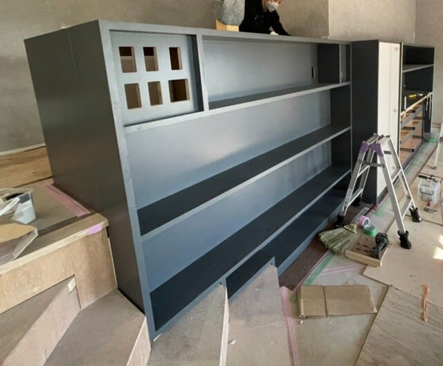今日送ってもらった写真はキッチンの造作家具。その他もあったけど、まだまだ現場感が凄い状態w。