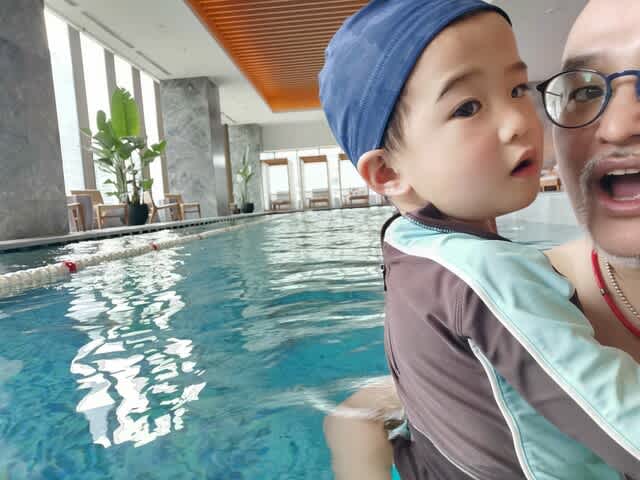 パパにひたすらしがみついて、とかではなく、バタ足をやりましたが、3歳にしてはマジで上手。おいら、1歳半からスイミング🏊♂️に通っていたんですけど、3歳の時こんなこと出来なかったと思うな。