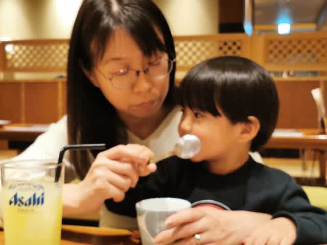 途中で舌噛んだらしく。聞こえてなくてさ。ごめんね。知らずに食べろ食べろって言い続けてたね。
