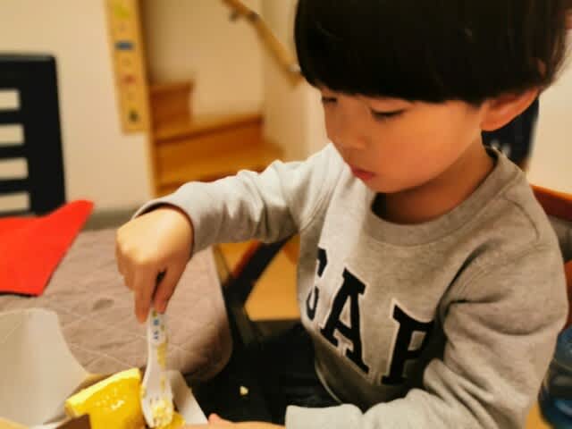 夕飯食べている時に言ったのよね、ケーキあるんだよね、と。