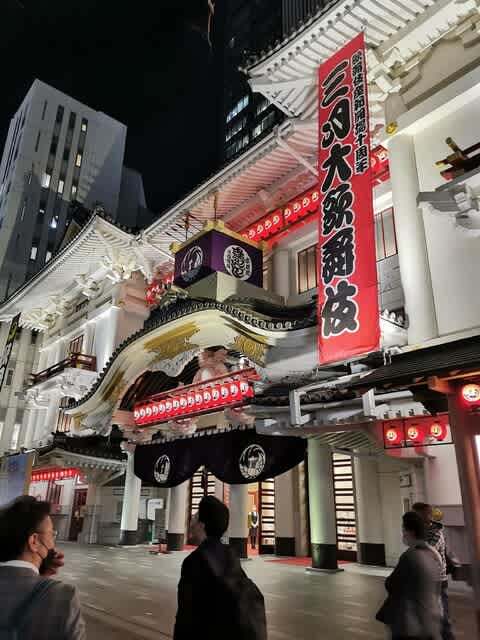 仕事関連の会食で東銀座に来ました。歌舞伎座が煌々としてましたな。