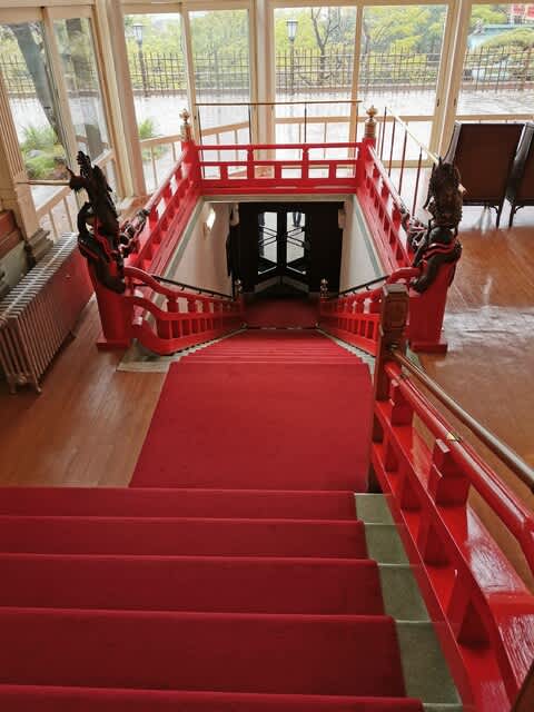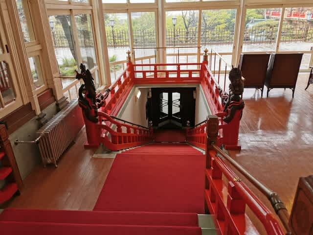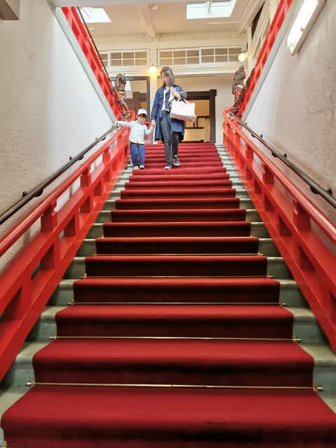 チェックアウト後、B1に降りる階段。龍🐉が2匹。
