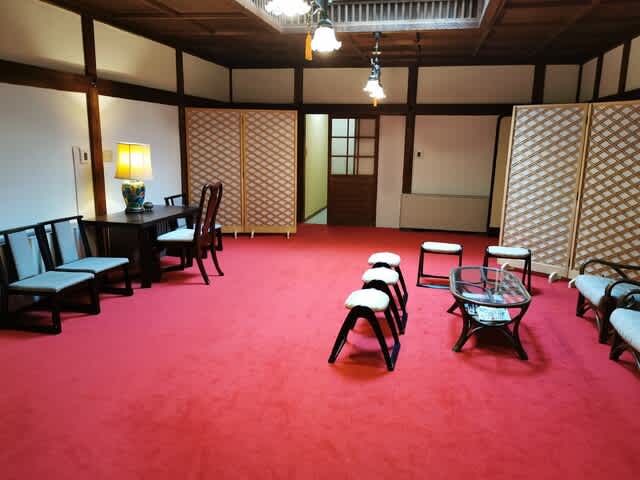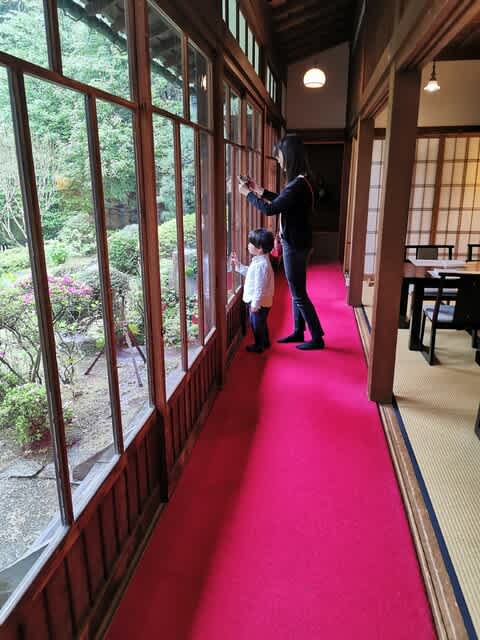 緋毛氈、我が家の廊下にも敷く。こう言うお庭のあるお家良いよね𖤣𖤥𖠿𖤣𖤥。歴史の重みを感じます。