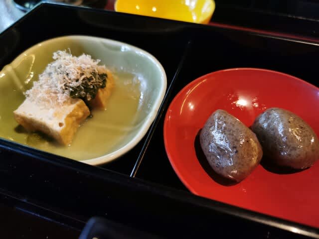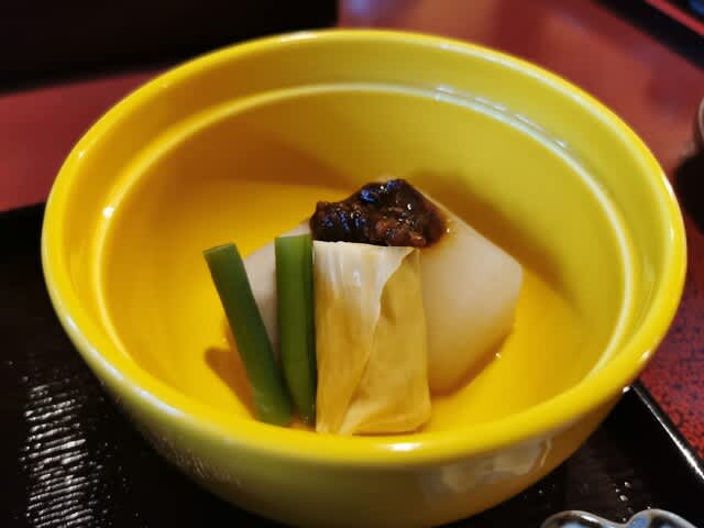 大根と里芋の肉味噌掛け、春湯葉