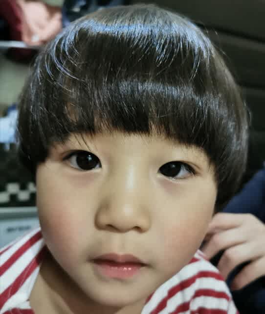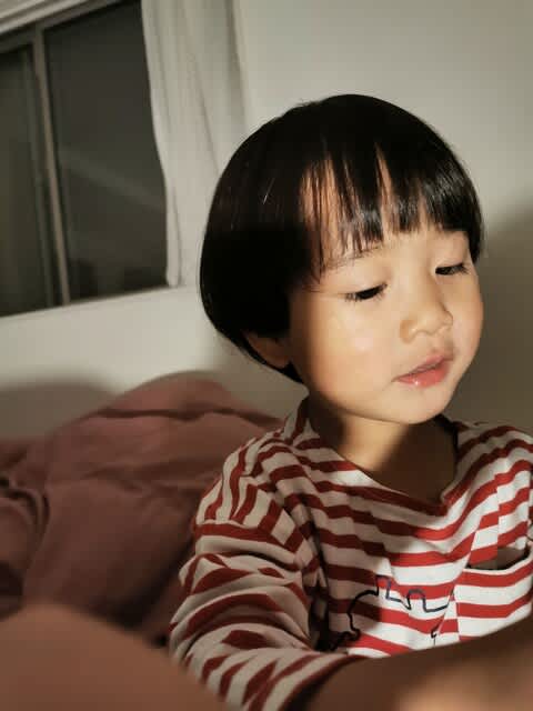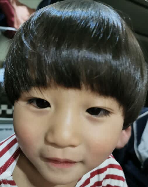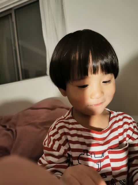 みらんくんの髪の毛が目に入りそうな感じになっていたので、帰宅後に髪の毛をチョキチョキ✂。
