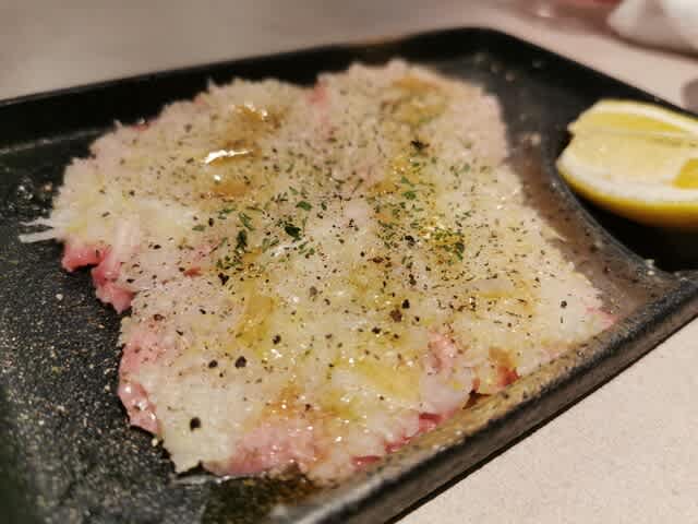 ネギ塩牛タンから。蒸し焼きでも美味しい。ネギ塩がタンの甘みを引き出したので、追塩してみたら絶品だったわ。