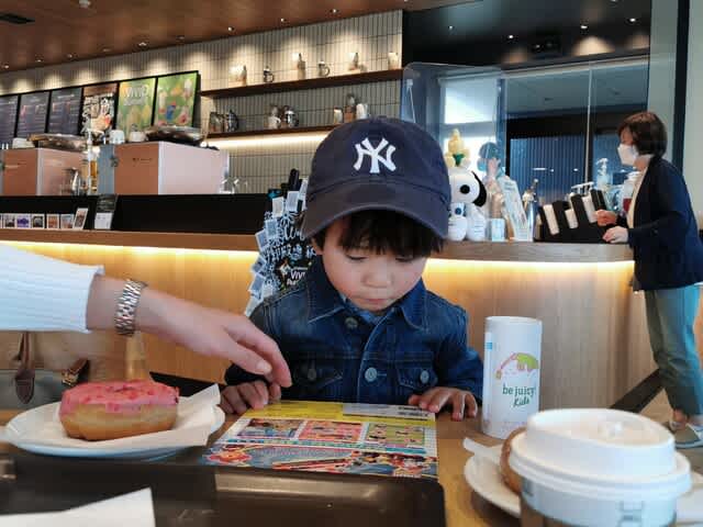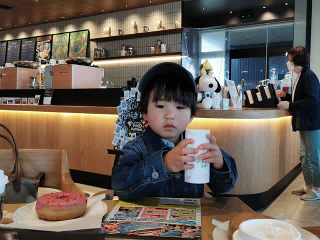 『スタバでドーナツを頬張り・・・』