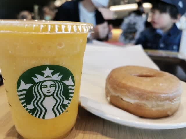 久々にドーナツを食べましたわ。あとマンゴーフラペチーノも久々に。