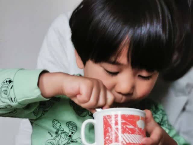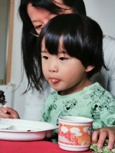 朝ご飯で、みらんくんがムシャムシャとチョコレートドーナツ🍩食べていて。