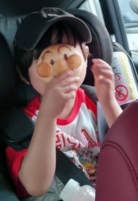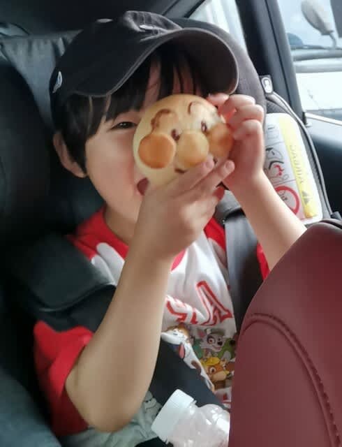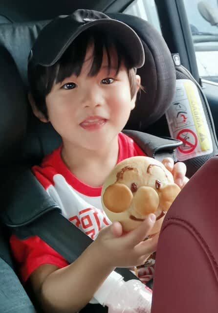 アンパン持ってニコニコみらんくん。こういう顔を見られて、親として幸せですね。