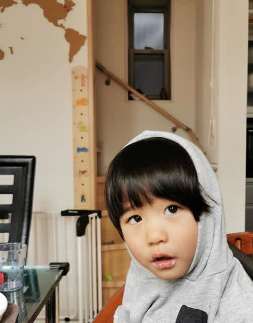 保育園ではフード付きの洋服は禁止なので、自宅では着せている。なんで?と聞かれたんだが、引っ張ったりするお友達がいるかも知れないから、と言う事勿れ主義の回答に、自分で嫌になった。引っ張るかね?まぁ、喧嘩とかし始めたら何するか分からんからなぁ。。。平気で顔を爪で引っ掻いたりして、うちの子の可愛い顔に傷が残ったからなぁ…(怒)。とまぁ、それは兎も角、朝からご飯食べるのに、フード被る必要ありますかね?よく分からんけど、朝ご飯のフードと洋服のフードを掛けたのか?そうなのか?