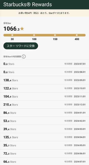 つい、昨日のことですが、6月末で消えるポイントと言うのが目に留まり、300ポイント分をスターリワード🌟に換えましたわ。2段階型のポイントスキームで、決してポイントがそのまま現金と看做されるスキームにはしないのですよね、スターバックスって。なのでクーポンに換えさせて、それを使わせる。はっきり言って、使い方めんどくさいです。。