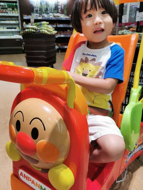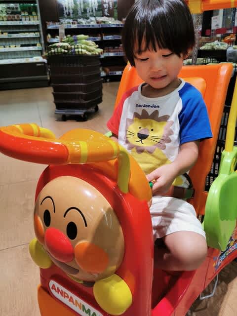 それはさておき、スーパーでアンパンマン(● ̍̑● ̍̑●)のカートを見つけ。