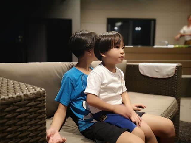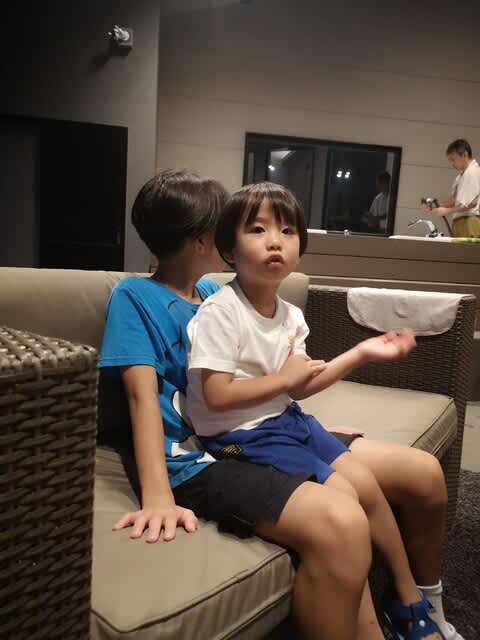 奥さんとりゅうりゅうとbrunchで外食。
