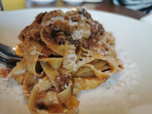 まずはボロネーゼ。お肉ゴロゴロで美味しかったです。チーズも恐らくパルミジャーノレッジャーノでしょうけれど、美味しく。