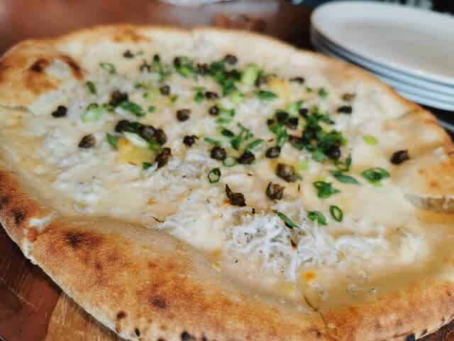 そしてシラスのPizza。個人の好みに拠るでしょうけれど、ピカンテを掛けたら美味しさが倍増した感じ。