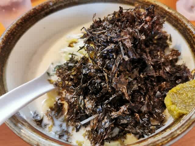 オフィスに行かないのであればガッツリとニンニク入れるんだが、海苔と柚子胡椒だけ。ここのラーメンに乗せる海苔、大好きなんだよねぇ。