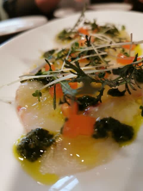 鯛のカルパッチョ、ジェノベーゼスタイル。