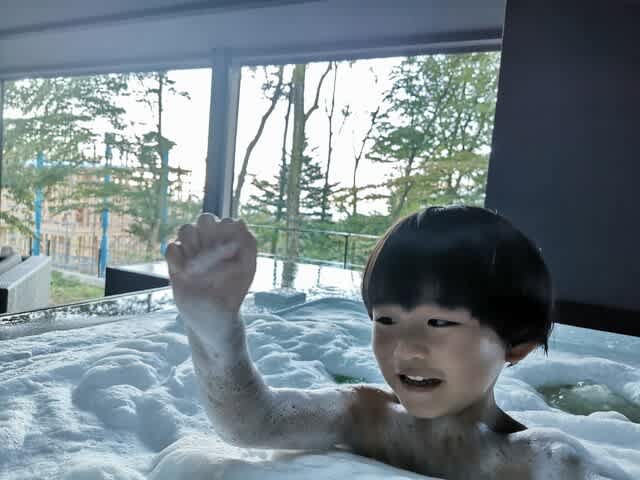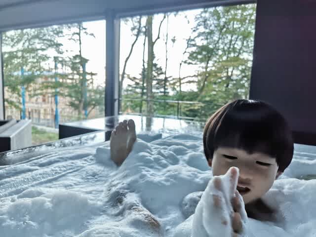 ジャクジー用の泡泡を入れて、スイッチonでブクブク𓈒 𓂂𓏸。泡のタワーになるくらいに。