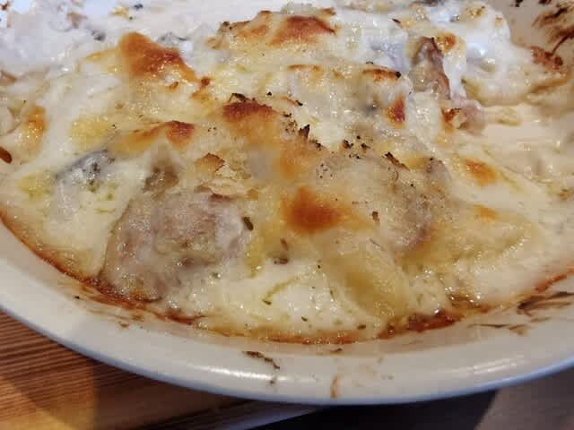 奥さんはマカロニグラタン🍗🍝。美味しいチキンが入ってましたよ。