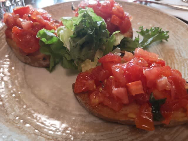 ブルスケッタを2人で分けて食べましたわ。